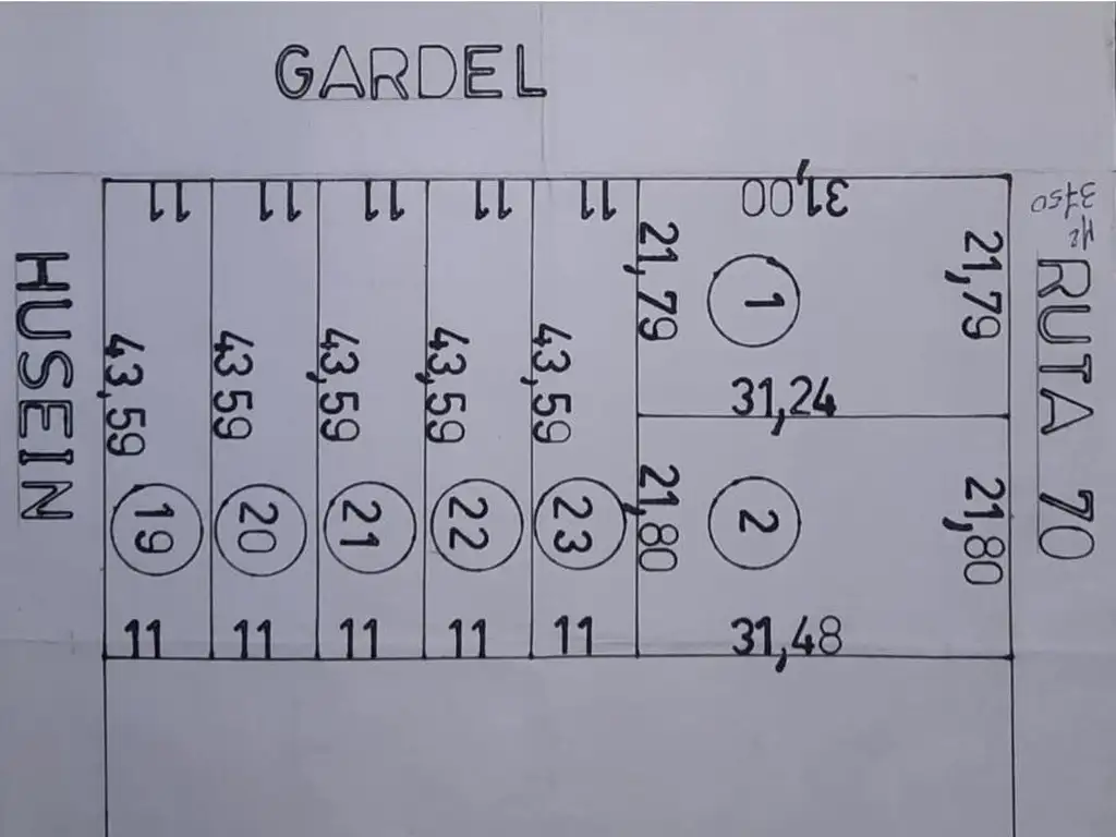 LOTE NUMERO "2" = TREINTA MIL (30.000) DOLARES. Medidas: 21,80 x 31,24 y 31,48 mts.