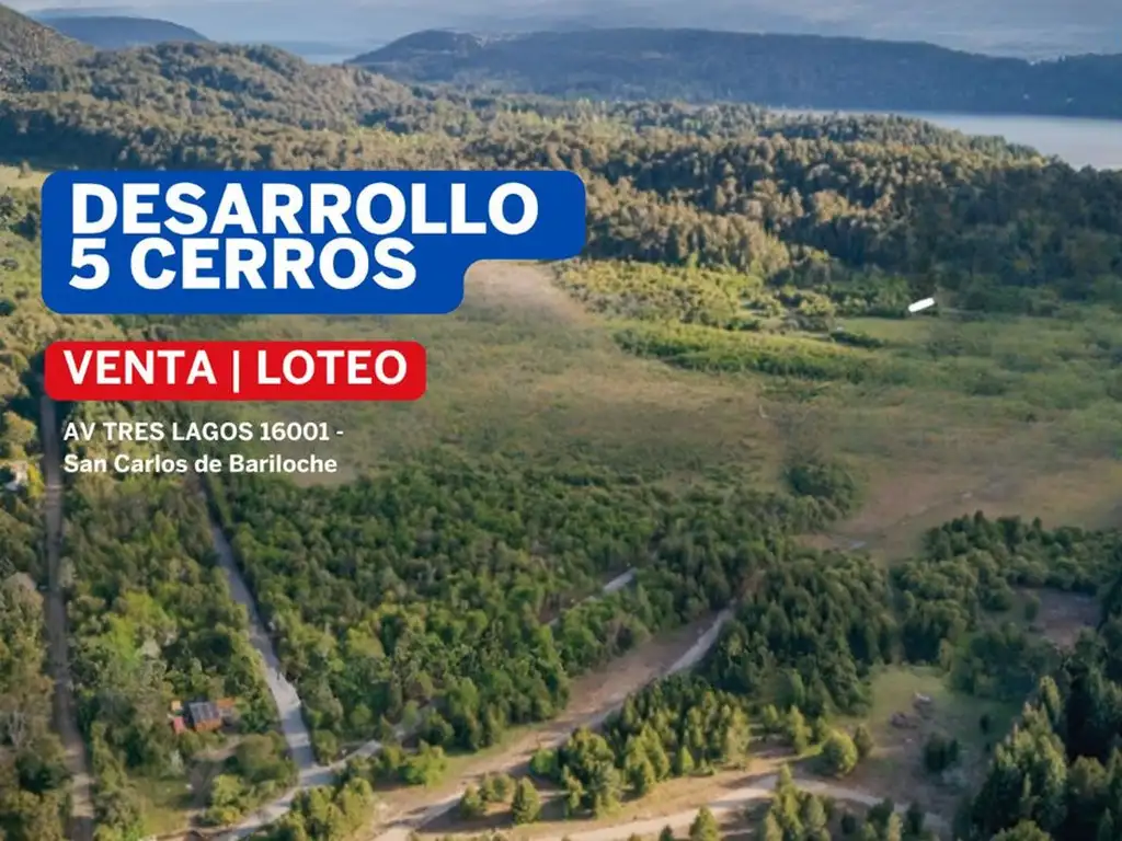 -DESARROLLO DE LOTES \"5 CERROS\": Barrio Cerrado; una oportunidad para comenzar a vivir en Bariloche, la entrada principal del barrio es por el Antiguo Camino al Llao Llao (AV. TRES LAGOS 16001) a la altura del km 13.100 (Calle Rio minero)