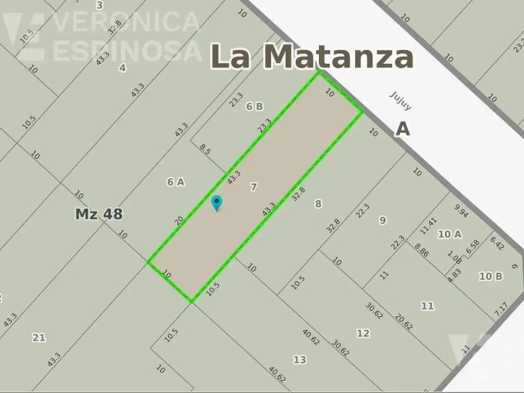Superficie total del lote 433 m2. Lote de 10 x 43 mts.