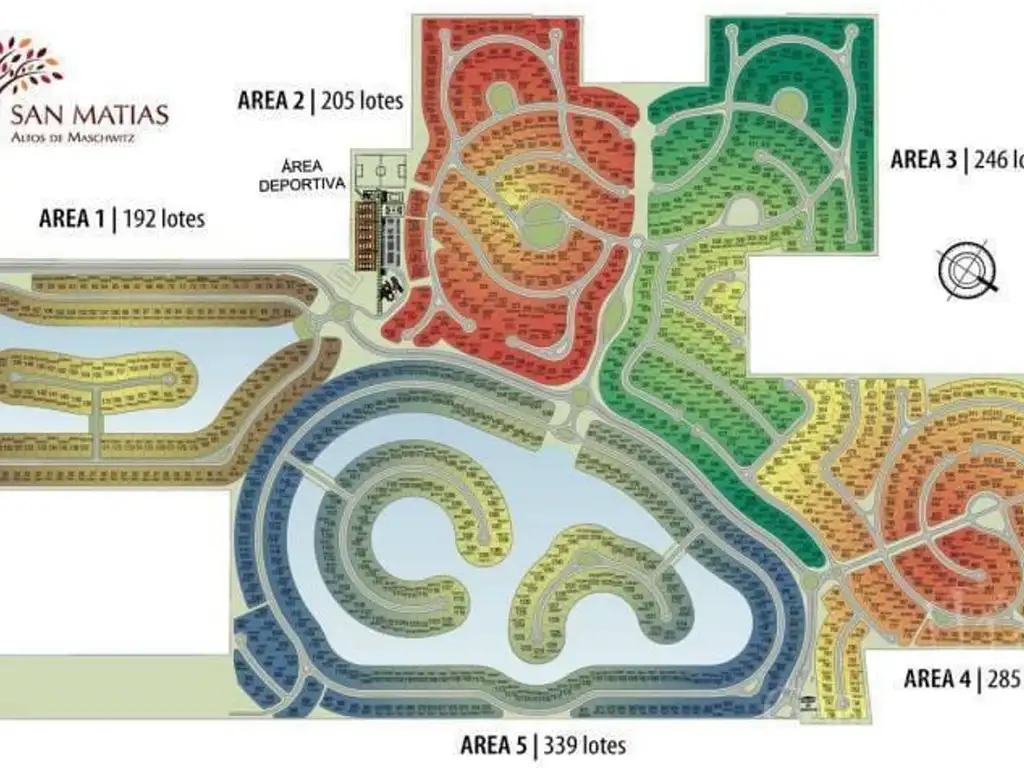 En 202 hectáreas se desarrollan 5 áreas con diferentes características con un total de 1268 unidades funcionales, cuya superficie promedio es de 830 metros.
