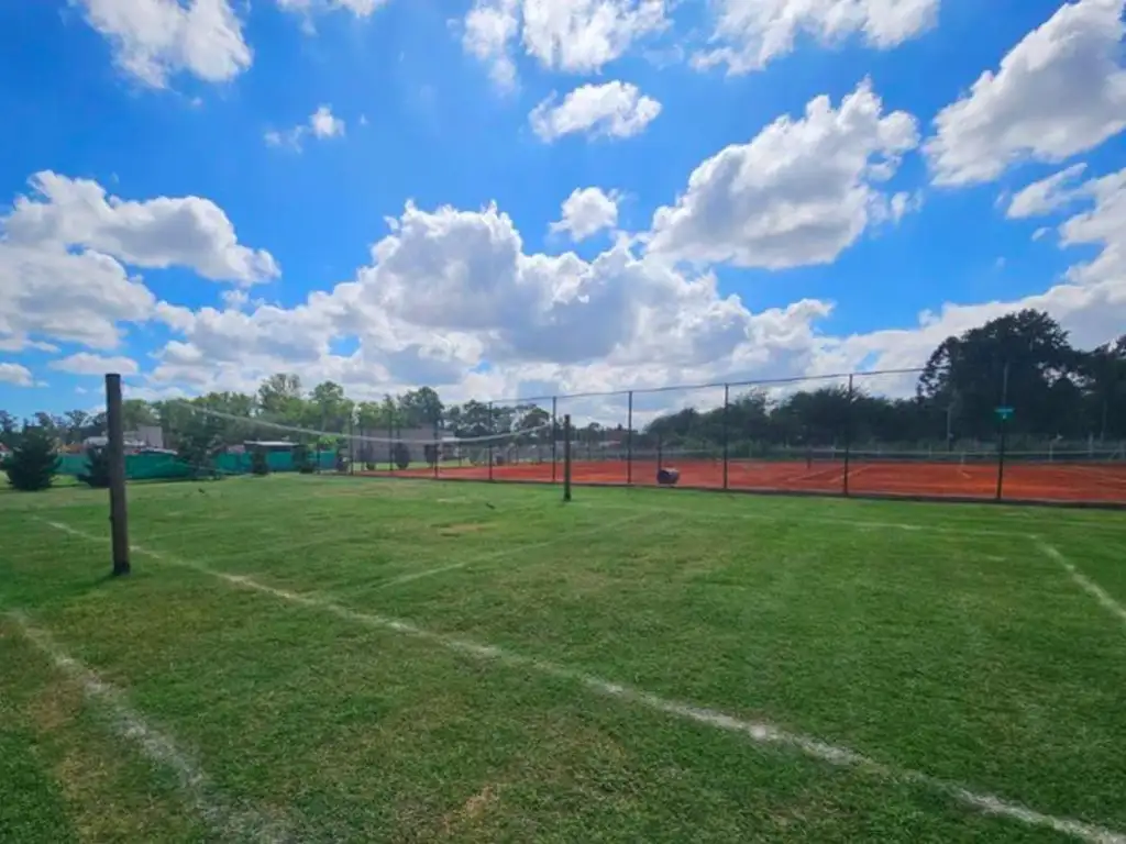 Caminos asfaltados con cordón cuneta, cerco perimetral y edificio de acceso. área deportiva con dos canchas de tenis, una de fútbol, un salón de usos múltiples, plaza de juegos y seguridad 24 hs