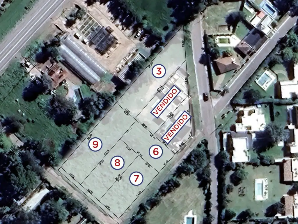 Lote 9 - frente de 16 m por 52 m de fondo, una sup. total de 846 m² con un valor de U$D 50.000 dólares.