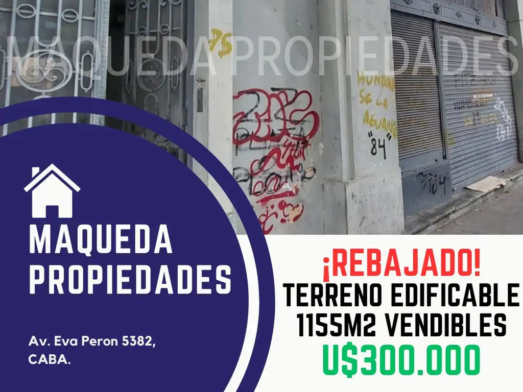 TERRENO EDIFICABLE 1155M2 VENDIBLES Y 6 COCHERAS ¡OPORTUNIDAD!