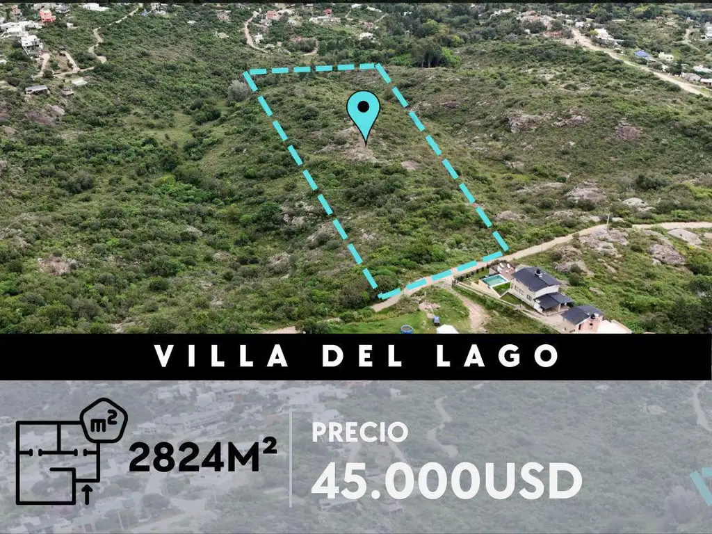 Espectacular terreno de 2.824 mts2 en Villa del Lago, Carlos Paz, 100 mts de la ruta 38. Con espectacular vista a las sierras y a la ciudad de Carlos Paz, excelente entorno, de constante crecimiento y revalorización. Excelente accesibilidad.