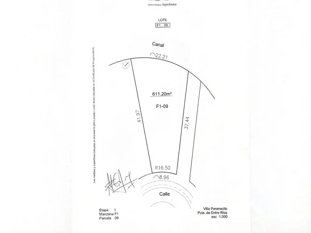 16,50mts de Frente x 41,97mts (Lado) x 22,21mts (Contra frente) x 37,44mts (Lado)