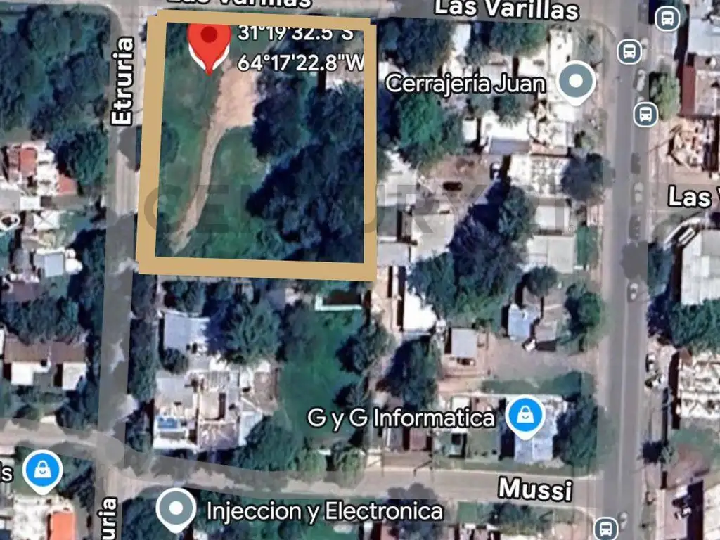 15 frente X 22 de fondo= 360m2. El valor es de 32.000 USD (sobre calle Etruria)