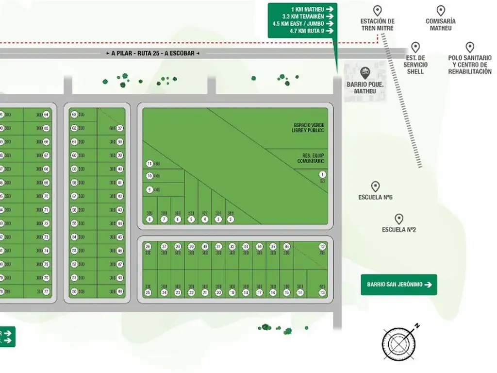 A tan sólo 1 km del centro comercial de Matheu con excelente ubicación a 650 metros de R25, a tan sólo 4.5 km de R9 y a sólo 10 minutos de Escobar.