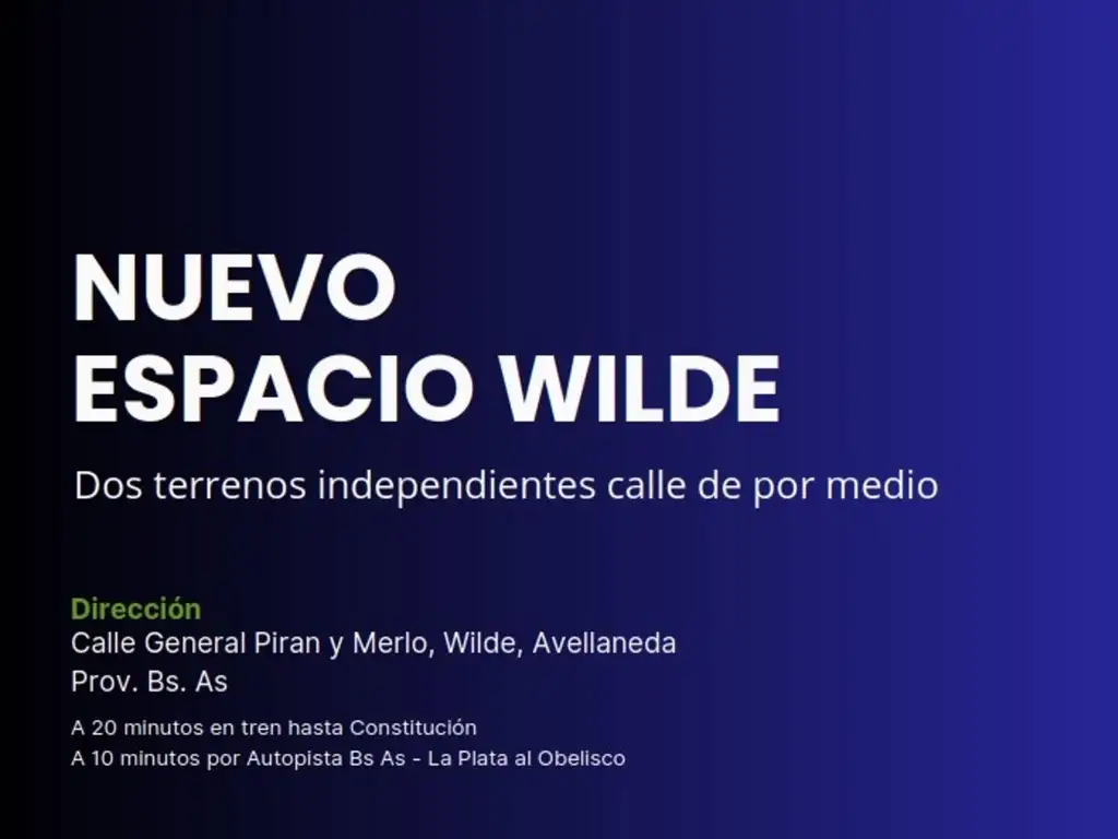 NUEVO ESPACIO WILDE - DOS TERRENOS INDEPENDIENTES CALLE DE POR MEDIO - CALLE GENERAL PIRAN Y MERLO - WILDE - AVELLANEDA Bs.As. G.B.A Zona Sur.